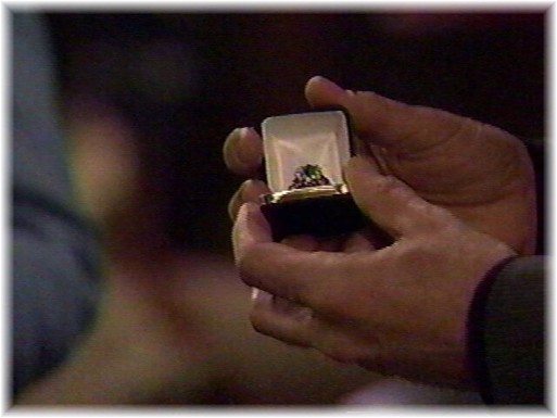 When he places the ring upon her fingers before all their guests!